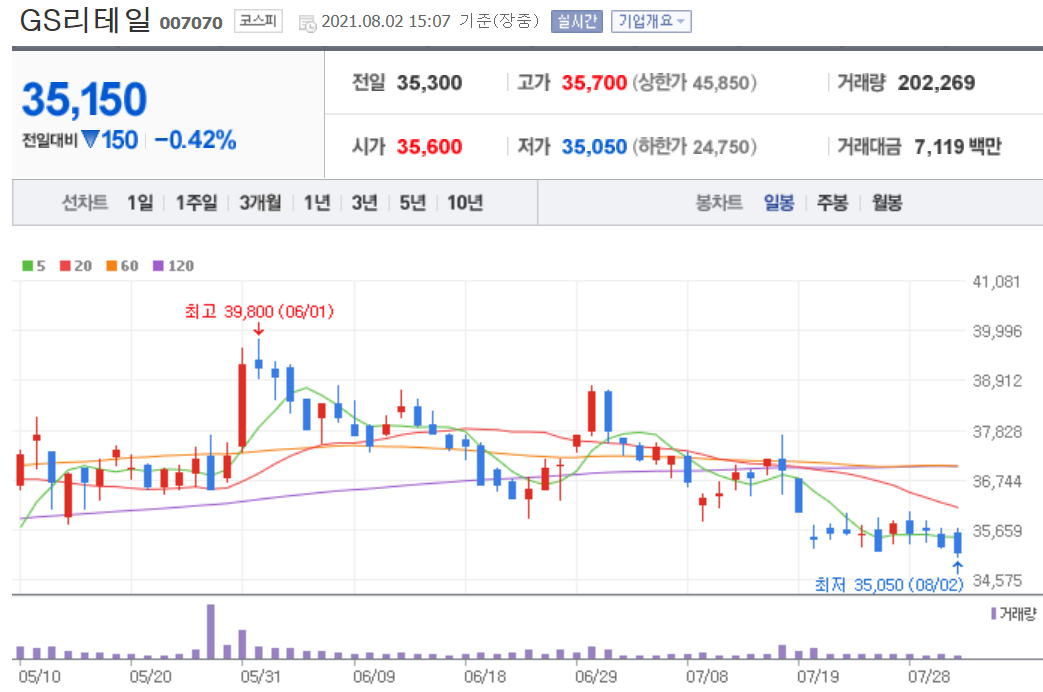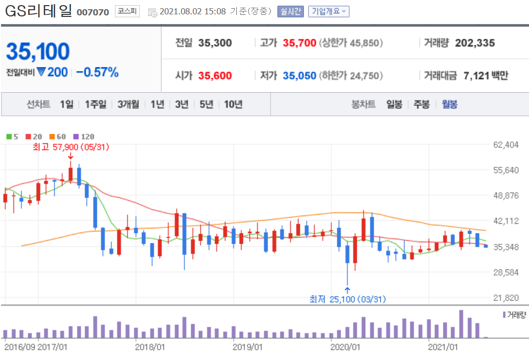 GS 리테일은 현재 매출 9조, 영업이익 2500억 수준으로 영업이익률이 높은편은 아닙니다. 시총도 3조 6천억으로 저평가 기업도 아닙니다. 그러나 이번 5차 재난지원금 사용을 통해 이익이 개선될 것으로 기대하고 있습니다.