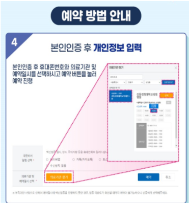 코로나 백신 접종 예약 홈페이지 https://ncvr.kdca.go.kr로 접속한 뒤에 예약하기를 클릭하신 하시면 됩니다. 그리고 위의 절차(1~3)를 따라서 본인인증을 하시면 됩니다. 그리고 이후 절차는 아래의 4~5번을 참고하셔서 예약이 완료가 됩니다.