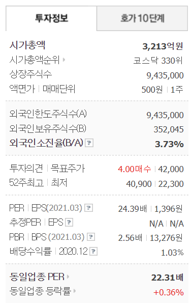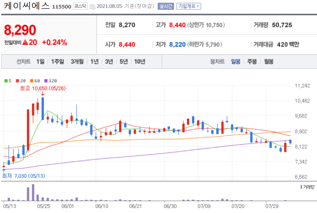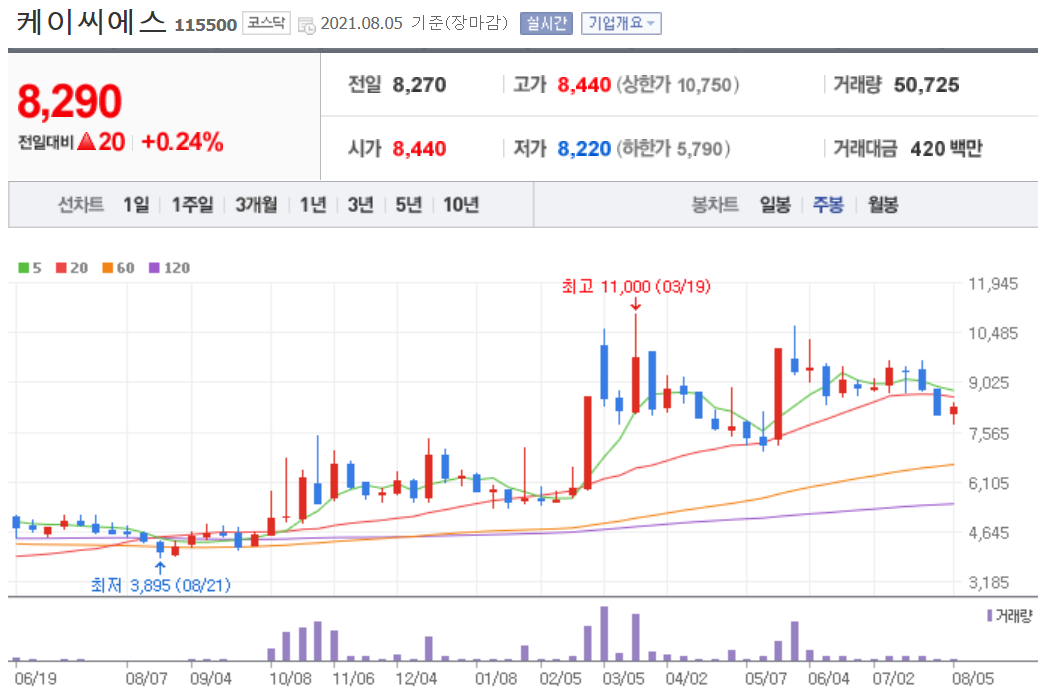현재는 주봉으로 보면 꾸준히 우상향하고 있는 중장기적으로 성장하는 기업입니다. 일봉상으로는 현재 조정구간에서 박스권을 살짝 이탈하였으나 다시 올라오고 있네요.