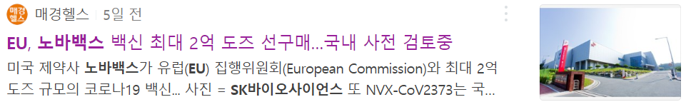 2. 유럽연합 EU 노바백스 백신 1억 도즈 계약 체결 (8월 1주차)