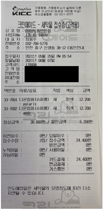 보통은 매년 6월쯤에 진행을 하는데, 혹시 올해는 안할수도 있지 않을까 하는 불안감에 롱패딩 2개만 우선 크린에이드에 세탁을 맡기기로 결심했습니다.