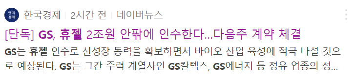 이번 휴젤 인수전은 신세계, 삼성등 국내 대기업들이 관심을 보였으나 결국 GS에서 인수가 확정되었습니다. 이번 계약은 다음 주에 체결될 예정입니다. 계약이 체결 완료되면 휴젤의 주가가 어떻게 될지 기대가 되네요.