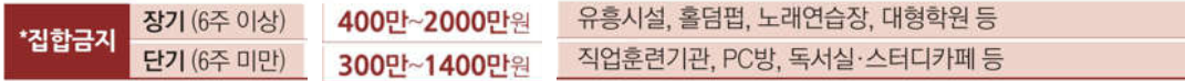 2020년 8월 16일부터 2021년 7월 6일까지 기간 중에 집합 금지 조치를 이행한 업종을 대상으로 합니다. 집합금지 업종은 6주 이상 집합금지를 이행한 사업체와 6주 미만 집합금지를 이행한 사업체 2가지로 분류됩니다.