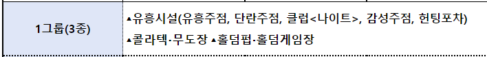 유흥주점, 단란주점, 클럽, 나이트, 감성주점, 헌팅 포차 등 1그룹에 해당하는 다중이용시설은 이용이 불가능합니다.