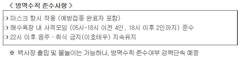 - 주요 내용 : 파라솔 등 피서용품 대여 중단, 샤워 탈의장 운영 중단,
