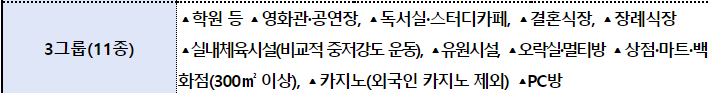 3. 식당, 카페, 학원 등 22시까지 이용 가능 (2그룹, 3그룹)