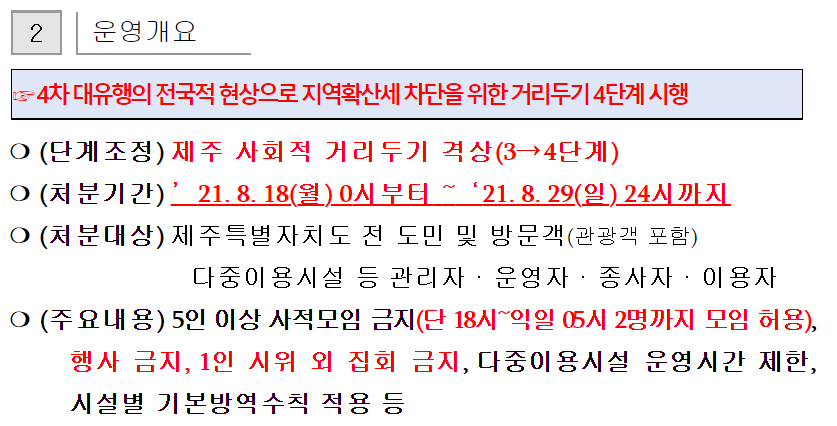 갑자기 제주도 거리두기가 4단계로 상향되면서 계획을 변경해야 하는 여행객도 상당히 많은 것 같습니다. 그래서 오늘은 제주도 4단계 거리두기 지침에 대해서 알아보려고 합니다. 그러면 지금부터 기간과 주요 4단계 지침에 대해서 설명드리겠습니다.