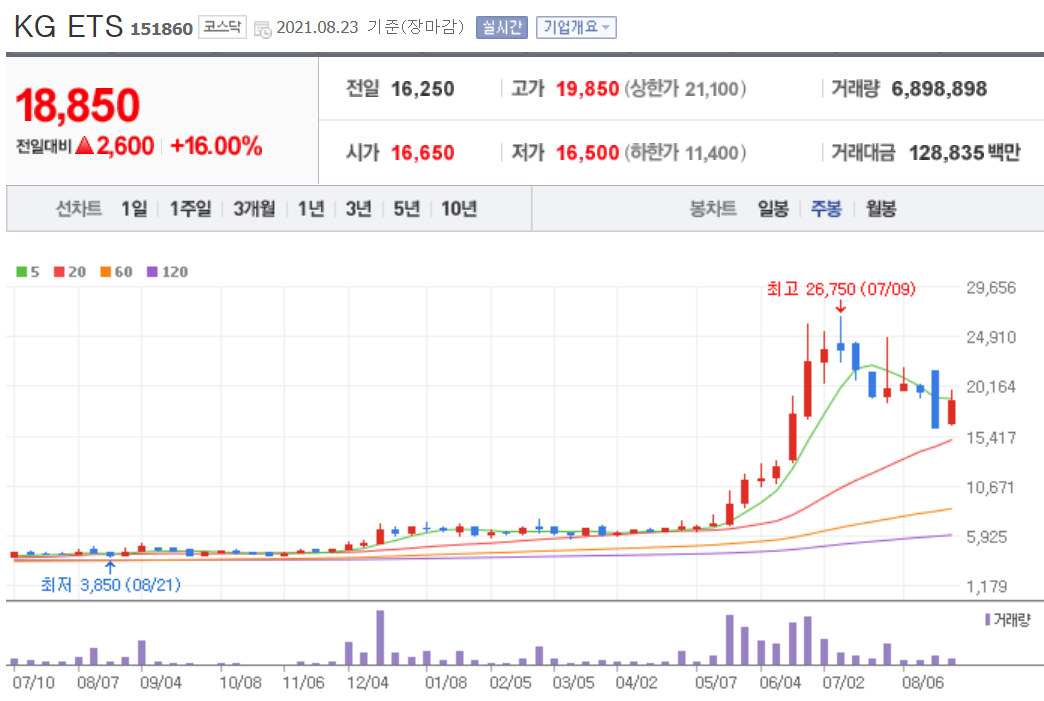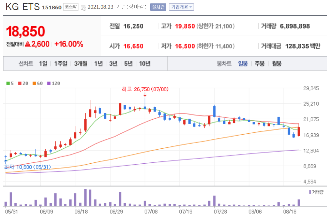 KG ETS는 내년도 실적이 주가 향방을 크게 좌우할 것 같습니다. 반짝 실적인지 지속적인 실적인지에 따라서 주가가 앞으로도 4배 이상 증가할 수도 있다고 생각합니다.
