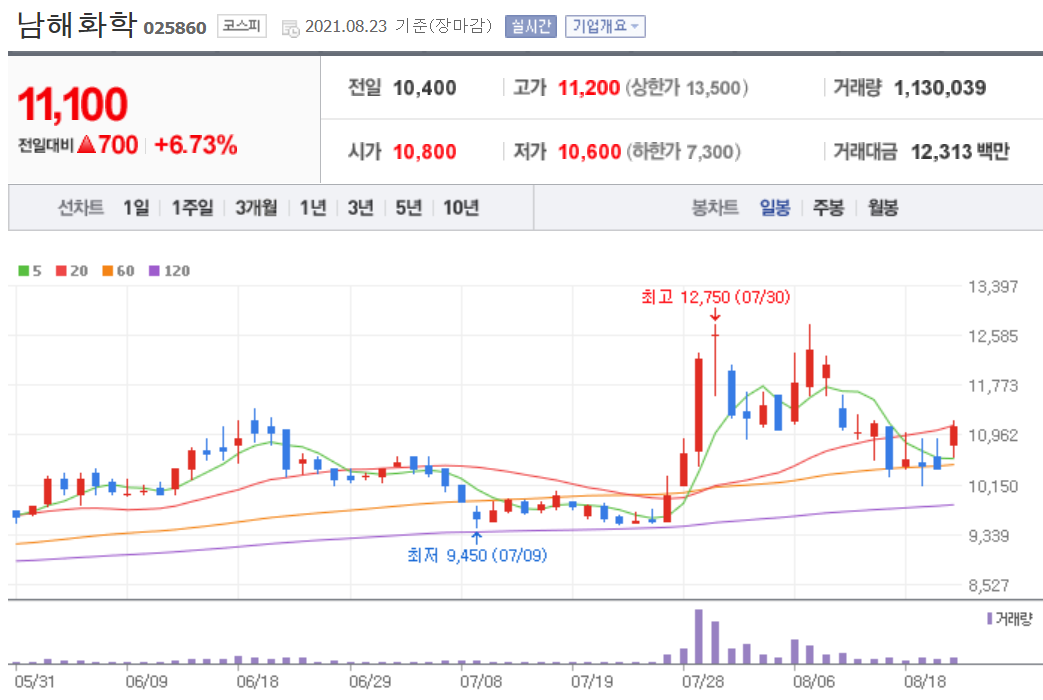 남해화학은 영업이익이 높은 편이 아니기 때문에 장기적으로 들고가기 보다는 태풍 테마나 다른 이슈에 의해 상승하게 되면 다른 종목으로 갈아타시는 것을 추천드립니다.