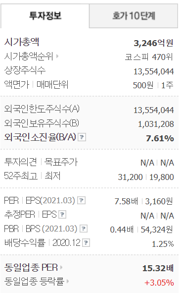 케이씨는 최근 3년 영업이익 평균이 700억 원이 넘습니다. 그런데 현재 시가총액은 3200억 원으로 매우 저평가된 기업 중 하나입니다. 영업이익률도 13%로 높은 편이고 안정적으로 수익을 내고 있는 기업입니다.