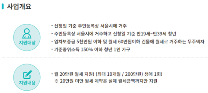 만약 소득이 없는 청년일 경우에는 부모의 소득을 합쳐서 월 300만 원 이하여야 합니다. 현재까지 제시된 사항은 이 정도이고 서울시 청년 월세 지원 자격을 검토해봤을 때는 임차보증금 5천만 원 이하 및 월세 60만 원 이하의 건물에 월세로 거주하는 무주택자라고 명시되어 있었습니다. 아마도 이와 비슷한 수준으로 검토할 것으로 예상됩니다.