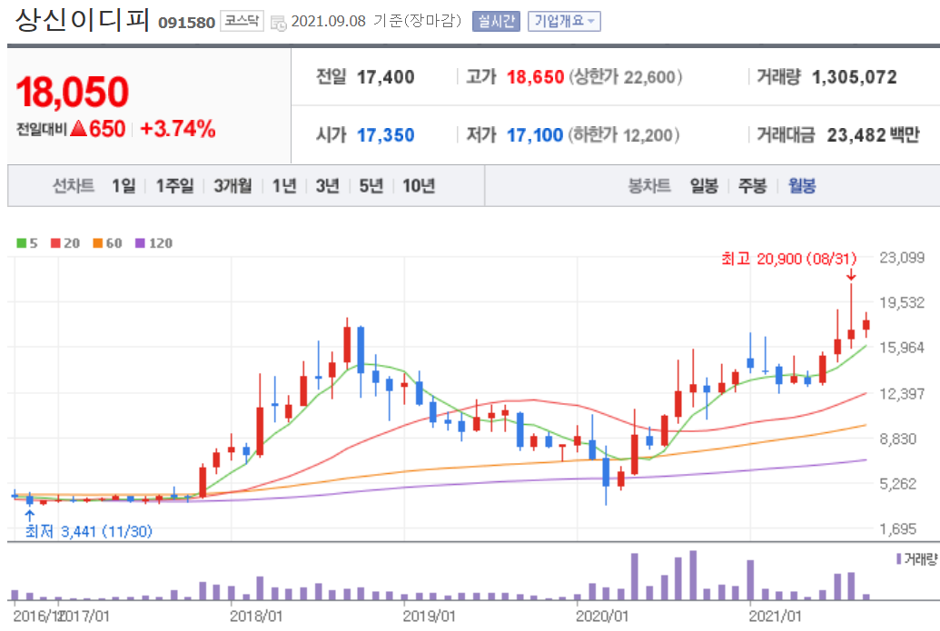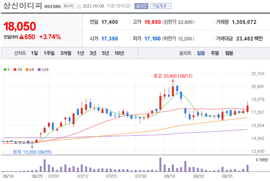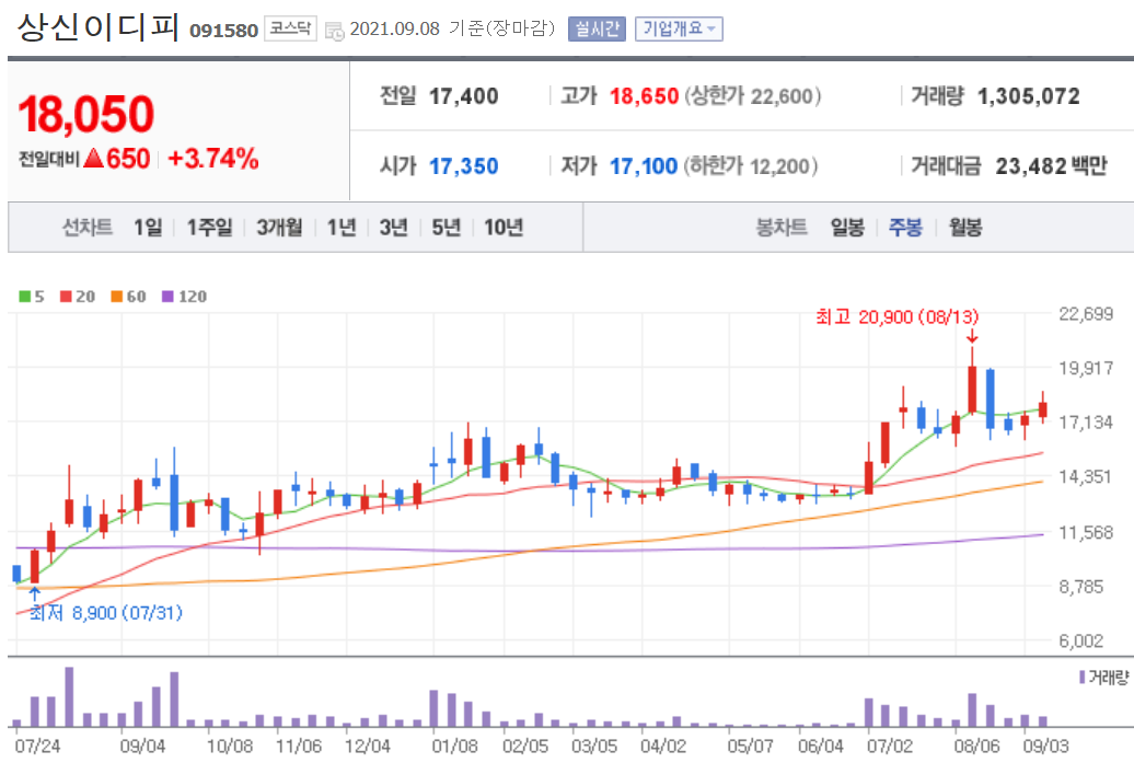 그래서 상신이디피는 지금 급등해도 이상하지 않지만 또 주가가 지지부진해도 이해하고 기다려야 합니다.
