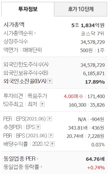 엘앤에프는 최근 주가가 급등하여 벌써 시가총액이 5조 원에 이릅니다. 올해 예상 영업이익이 300억 수준인 거에 배하면 상당한 고평가 구간이죠. 상당히 부담이 가는 시가 총액이네요. 지금 당장 엘앤에프 주식을 사는 것은 굉장히 리스크가 커 보입니다.