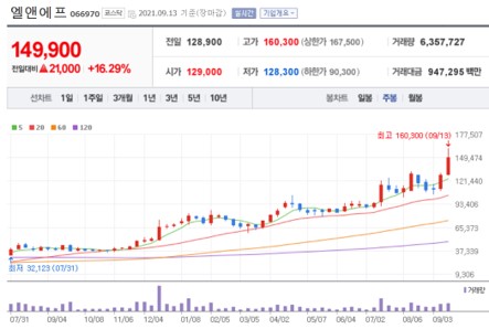 오늘 코스닥이 1% 넘게 하락하는 와중에 16%가 오른 종목이 있습니다. 바로 엘앤에프인데요. 지난주 에코프로비엠이 급등하면서 제가 에코프로비엠 수혜주로 엘앤에프를 언급한 적이 있습니다.