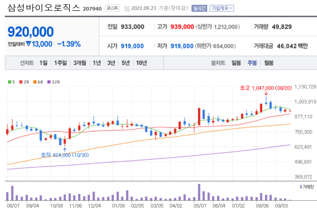 이제는 코로나 백신과 코로나 치료제에 더 비중을 싣어야 합니다. 그중에서도 저는 모더나 위탁생산 기업인 삼성 바이오로직스를 좋게 보고 있습니다. 삼성 바이오로직스는 셀트리온보다 실적은 좋지 않지만 CMO와 CDMO를 하고 있기 때문에 바로 매출로 반영되는 계약이 앞으로 계속해서 나올 겁니다.