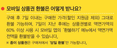 종이 상품권의 경우에는 구매처에서 당일에만 환불이 가능하기 때문에 꼭 주의하셔서 구매하시길 바랍니다.