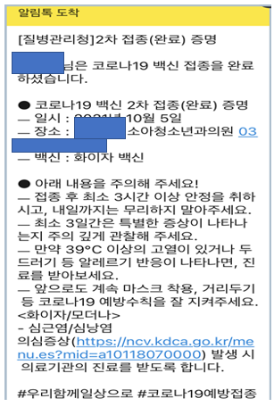 저는 해당 병원에서 전화가 왔어요. 혹시 몇 시까지 올 거냐고 확인하더라고요. 저는 10시쯤 간다고 이야기하고 바로 가서 접종을 받았습니다.