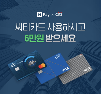 네이버페이 씨티카드 발급 혜택은 네이버페이 간편결재를 10만원 이상 이용하면 6만원을 네이버포인트로 지급한다는 내용입니다.