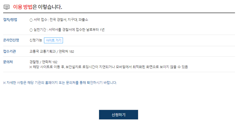 - 무위반 : 운전면허 취소, 정지 처분, 범칙금 통고처분, 과태료 처분이 없어야함.