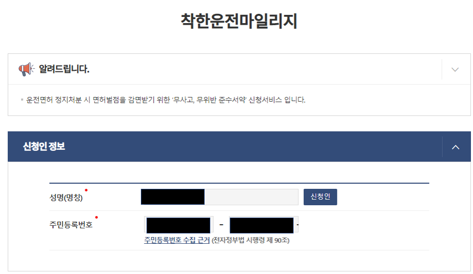 그런데 예상치 못하게 신호단속에 걸리거나 사고가나면 벌점이 발생을 하는데 상당히 부담스럽더라구요. 뭔가 카운트다운 하는 느낌이랄까? 꼭꼭 정부24에 들어가셔서 착한운전 마일리지 가입하시길 바라겠습니다!