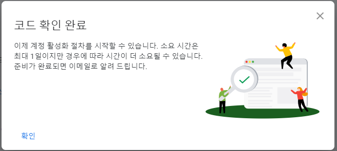 7. 코드 확인 완료에서 확인 버튼을 누르면 아래의 신청 완료 메시지를 확인할 수 있다.