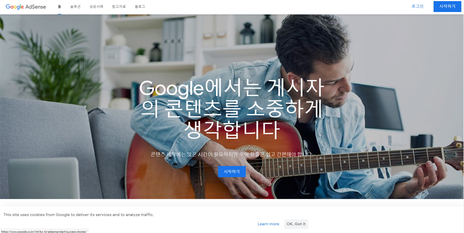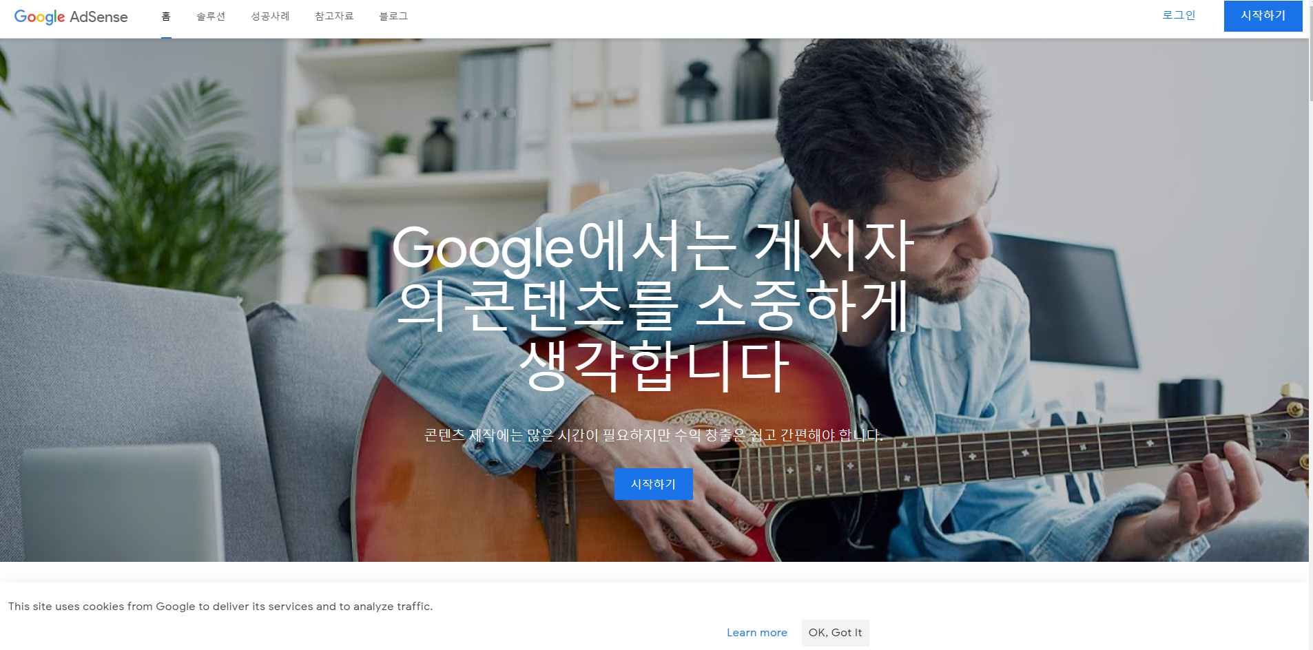 1. 구글 애드센스 홈페이지에 접속한다. (시작하기 버튼을 누른다.)