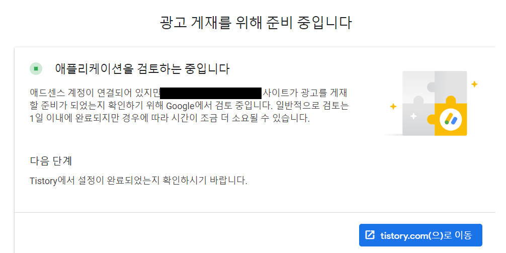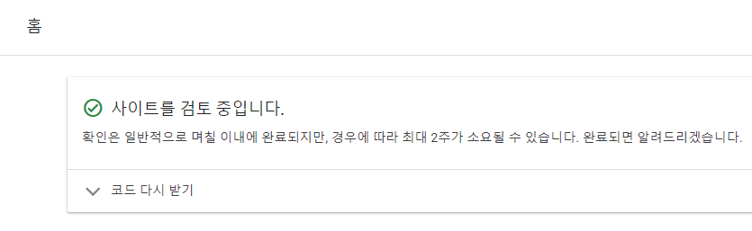 6. 애드센스가 코드를 사이트에 삽입했는지를 확인하면 아래와 같은 코드 확인 완료 메시지를 확인할 수 있다.