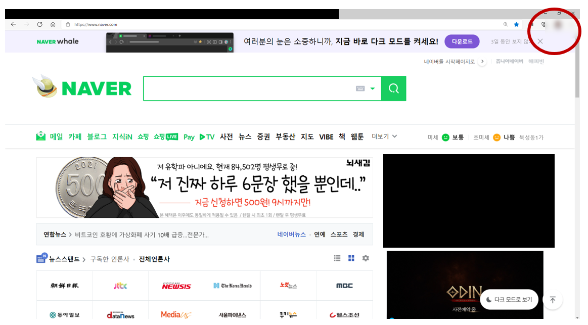 오른쪽 상단에 브라우저에 로그인한 상태가 표시된것을 확인합니다.