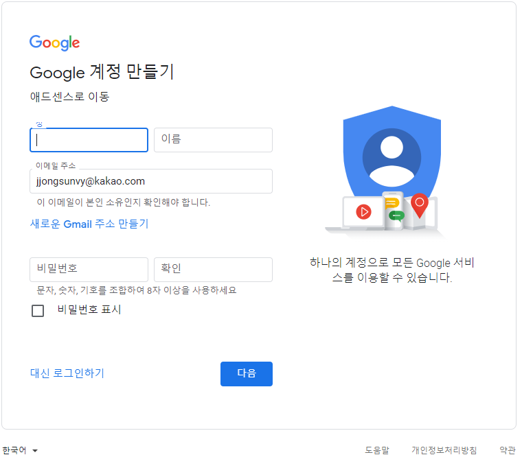 1. 이미 사용중인 구글 아이디로 로그인 후 애드센스에 가입하는 방법