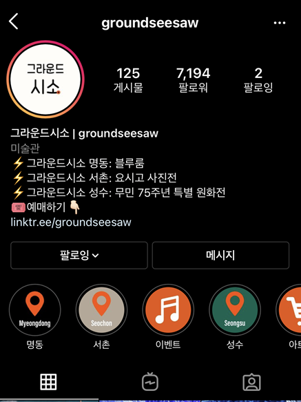(1) 우선 인스타그램 어플을 이용하여 그라운드시소 페이지에 접속합니다.