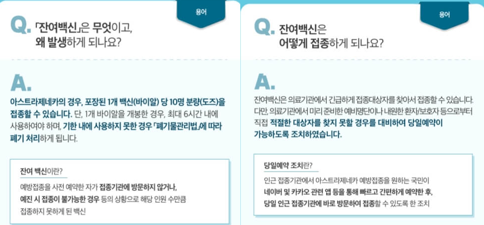 잔여백신 중 아스트라제네카는 1병당 10명까지 접종이 가능합니다. 1병을 개봉한 경우 최대 6시간까지 접종이 가능하며 6시간이 지나게 되면 폐기처리를 하게 됩니다. 때문에 당일 백신 접종 예약이 취소된 경우에 잔여백신 예약이 가능하게 만든것이 바로 잔여백신 예약 시스템입니다.