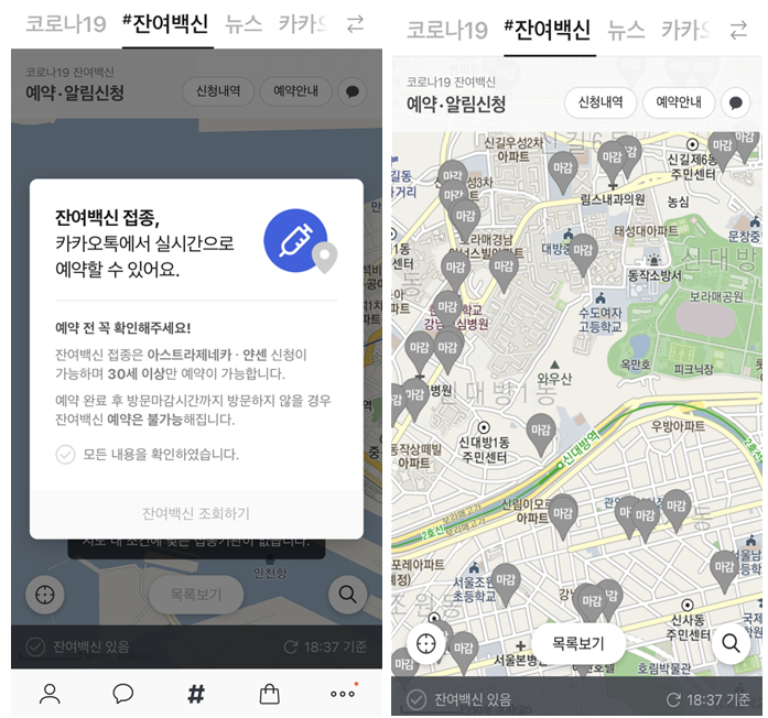 우리나라에서 가장 많이 쓰는 메신저가 바로 카카오톡입니다. 현재 카카오은 네이버에 버금갈 정도로 엄청난 성장을 했고 우리나라의 인프라 확충에 굉장히 큰 도움을 주는 기업입니다. 이러한 카카오톡에서도 잔여백신 예약이 가능합니다. 카카오톡은 스마트폰 어플리케이션을 통해 이용이 가능합니다. 아래의 순서에 따라서 진행하시면 잔여백신 예약을 하실수 있습니다.