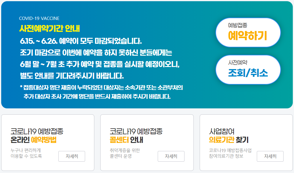 | 코로나 백신 접종 순서를 알아보고 예약하세요! (0) | 2021.07.05 |
