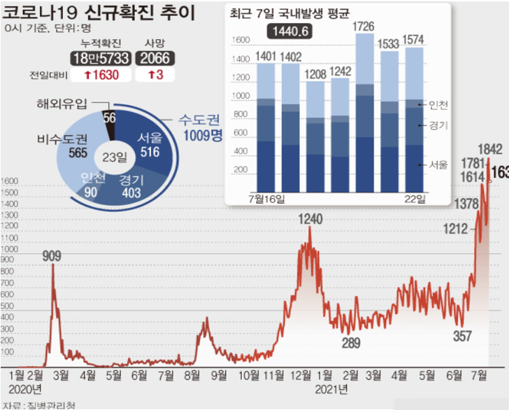 이번 주 코로나 확진자 수가 역대 최고인 1800명을 돌파하였고 아직까지도 사회적 거리두기 4단계에 대한 효과를 보지 못하고 있습니다. 3분기 코로나 백신 접종이 시작되었지만 백신의 효과도 아직 미비합니다.