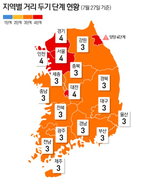 지난주 일요일 정부에서 비수도권 거리두기를 3단계로 일괄 적용시키는 지침을 내렸습니다. 최근 여름휴가 시즌과 겹쳐 확진자가 비수도권 지역에서도 빠르게 증가하였기 때문에 내린 조치라는 설명입니다.