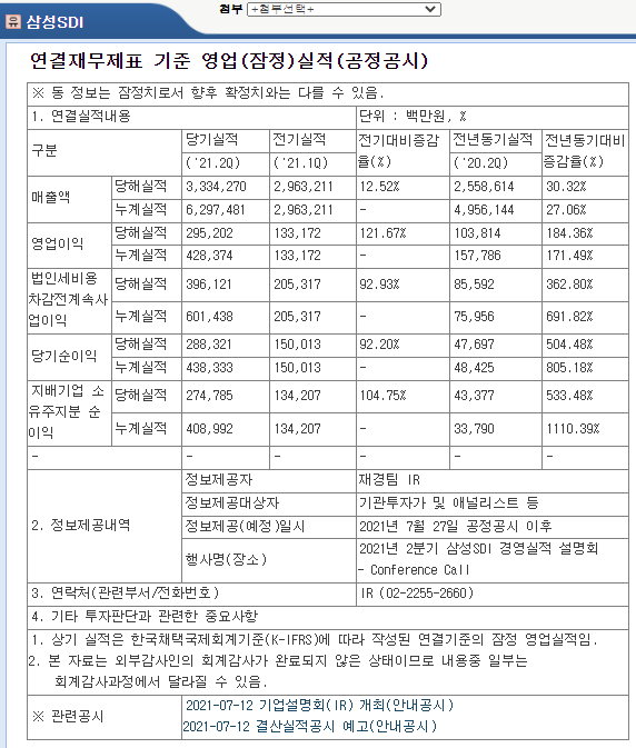 삼성SDI 2분기 실적 발표