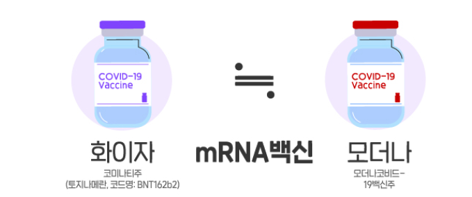 이번에 18~49세 백신 예약을 신청한 사람들은 화이자와 모더나 백신을 접종 받게 됩니다. 화이자와 모더나는 동일한 mRNA 타입의 백신으로 높은 코로나 예방률을 보이고 있습니다.