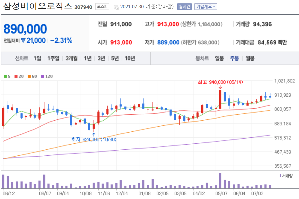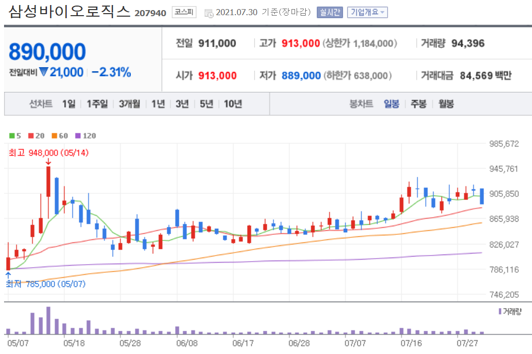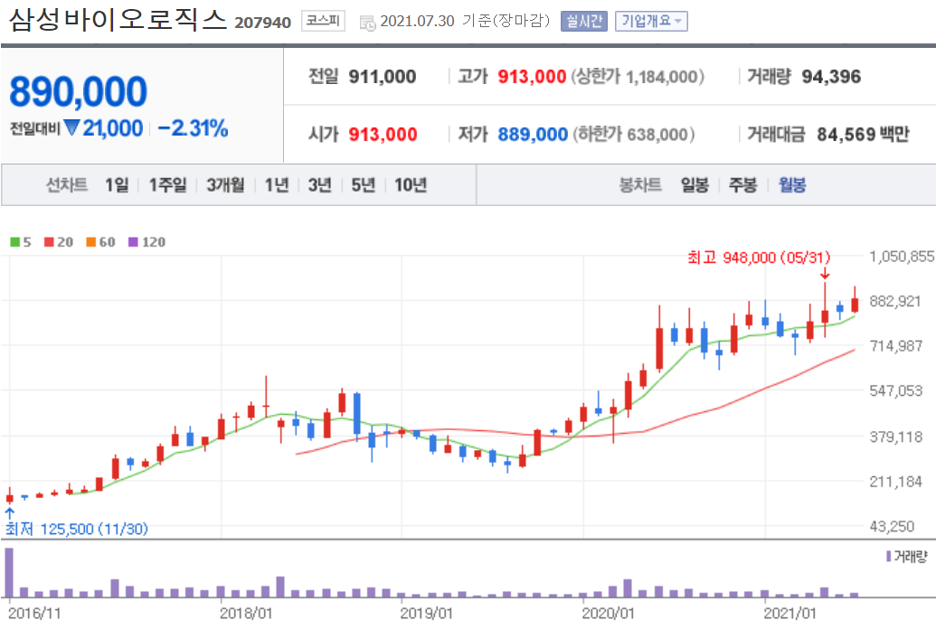 삼성바이오로직스는 국내에서 가장 큰 바이오 기업 중 하나이기 때문에 다른 바이오 기업보다 안정적이라는 장점이 있습니다. 매수를 고려하실 때 참고하시길 바랍니다. 삼성바이오로직스는 고평가라는 이야기도 있지만 실제로 실적이 찍히는 기업이기 때문에 큰 성장이 가능합니다.