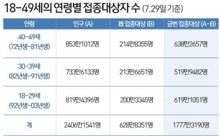 지난번 50대 백신 접종 대상자는 2차례에 걸쳐서 진행되었음에도 계속해서 서버가 다운되는 현상이 발생하였습니다. 그런데 이번 18~49세 백신 접종 대상자는 총 1777만명으로 50대보다 더 많은 수입니다.